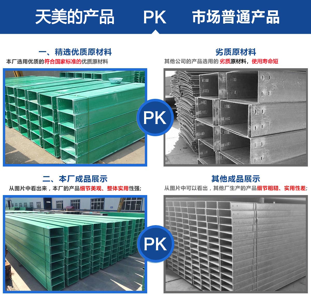 本公司主要產(chǎn)品有玻璃鋼電纜橋架、酚醛樹脂橋架、玻璃鋼除霧器、輪廓樁、防腐檁條、污水池蓋板、模壓化糞池、方形冷卻塔、圓形冷卻塔、RTM真空導(dǎo)入產(chǎn)品、熄焦塔除塵裝置等,公司設(shè)備較優(yōu)良,技術(shù)力量強,工人操作水平高,能夠獨立的進行玻璃鋼產(chǎn)品的制造和設(shè)計、適用于各大工程的建設(shè)。